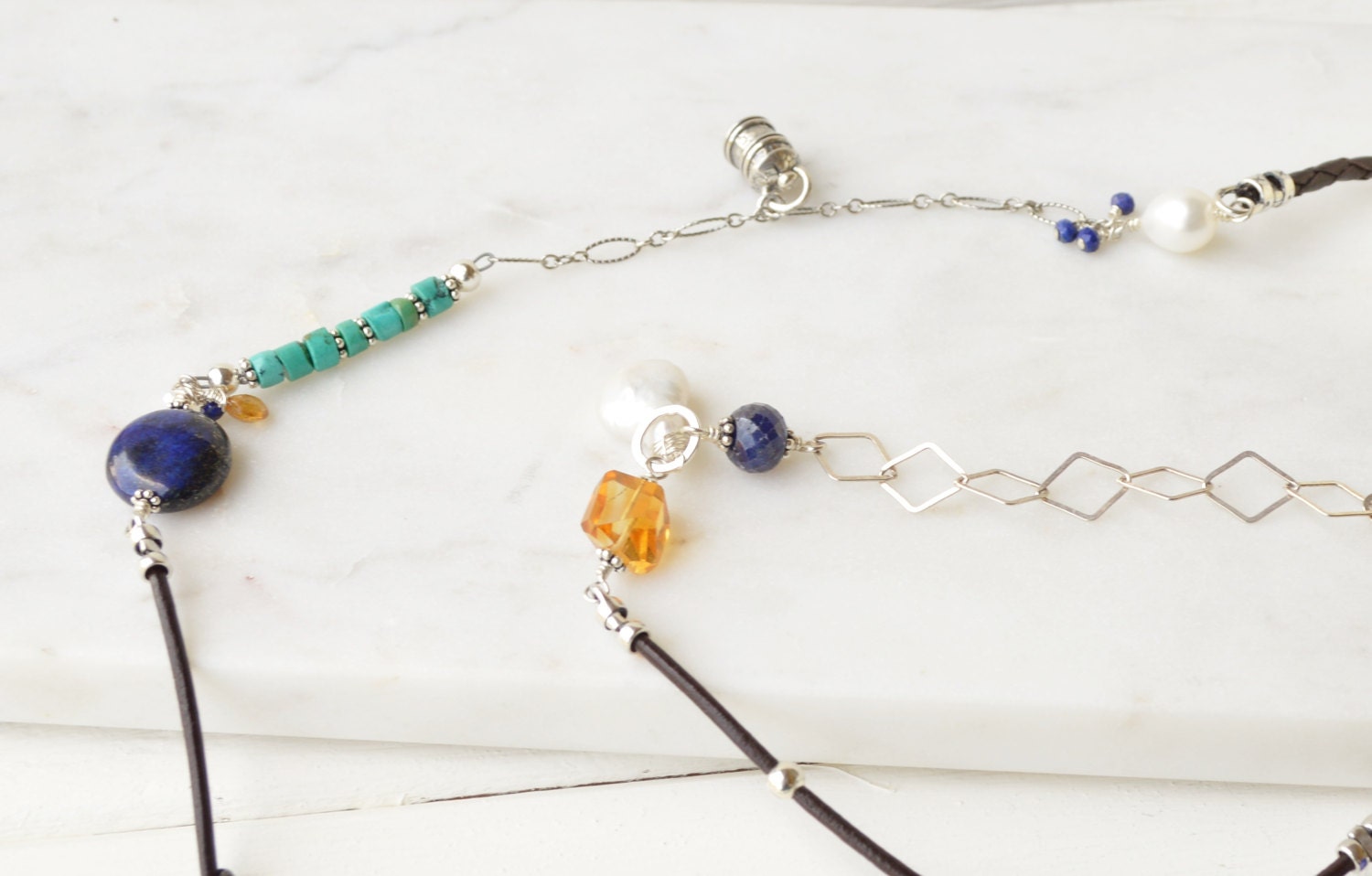 C'est la vie necklaces are designed to flow with your life style. There is no wrong way to wear this completely one of a kind necklace. This is the only one of its kind.  Each gemstone and bead were selected for this singular piece.